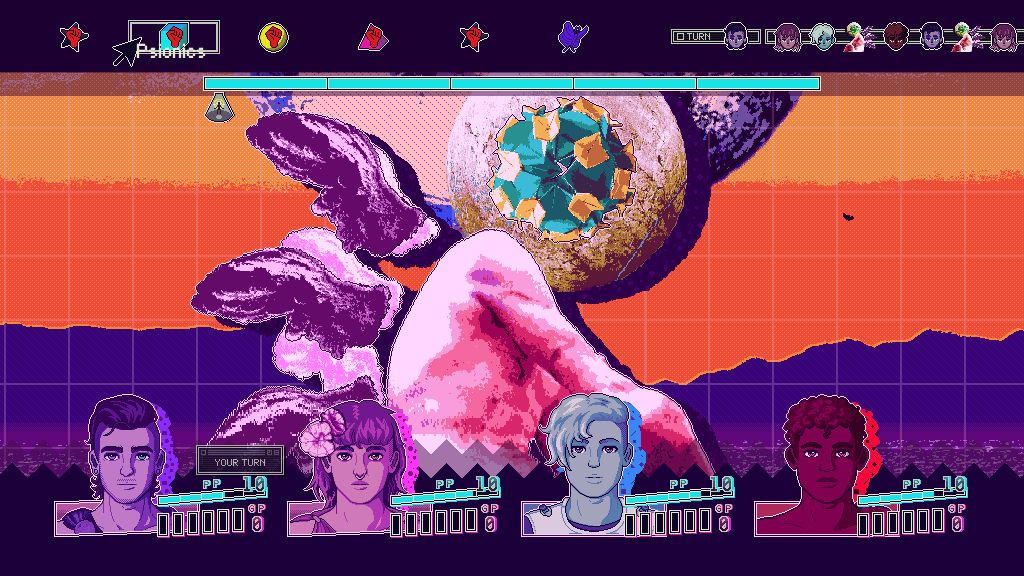 APÓSTASI features a turn based combat system balanced around its the ability to pass turns and manipulate the turn order in addition to status effect-encouraged approach to combat.